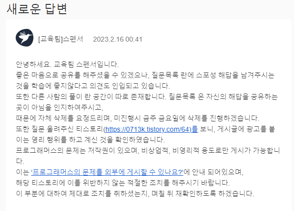 하지만, 프로그래머스의 알림으로 저작권에 위반하는 것을 인지하여 블로그 수익창출 하던 것을 멈추고, 노션 개인 파일에 업로드를 하기 시작했다.